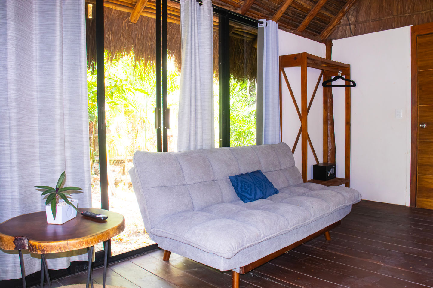 Nuestras cabañas están rodeadas por una exuberante naturaleza, donde encontrarás una alberca con agua de Cenote cristalina para poder refrescarte. Cada habitación exhibe rasgos de la naturaleza en los que encontrarás el confort necesario para un descanso del ruido de la gran ciudad y la privacidad necesaria para conectar con lo natural.